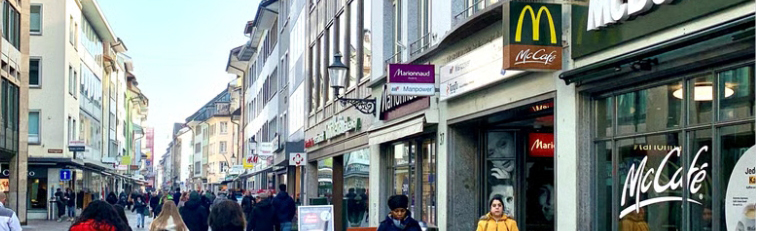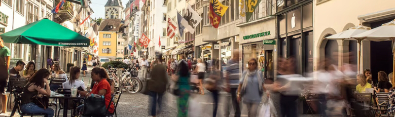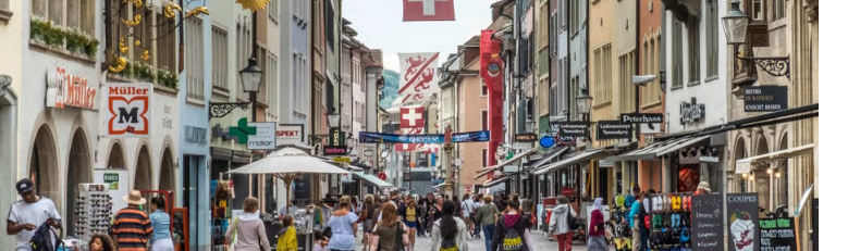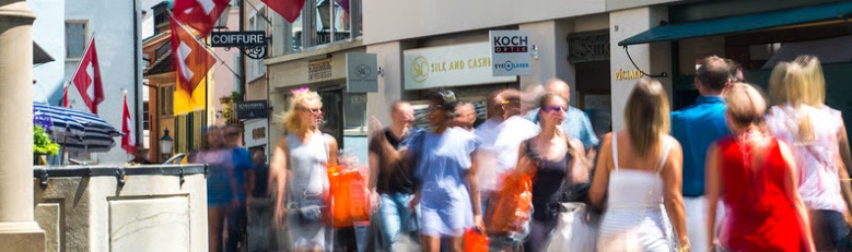 Switzerland is also a popular travel destination at all year round for tourists from all continents. This makes the Swiss shopping streets an attractive place for national and international retailers alike. The shopping streets in beautiful old towns, surrounded by lakes and mountains are home to boutiques for every taste and budget. Of course, the Swiss clichés are not missing, there are many watch shops and chocolate is also sold everywhere.